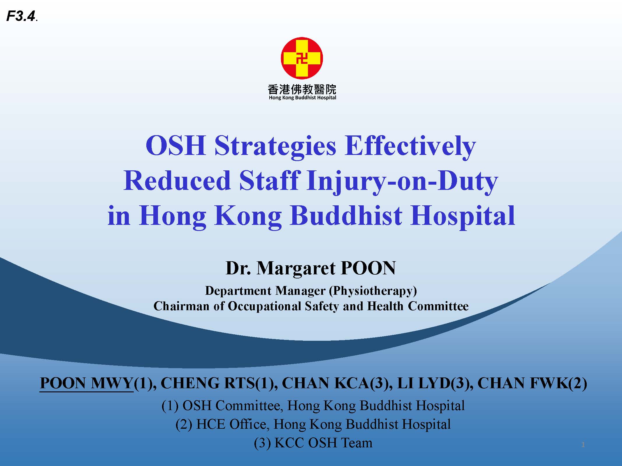 (1) Occupational Medicine Care Service (OMCS), New Territories East Cluster (2) Department of Anesthesia, Pain and Perioperative Medicine, Prince of Wales Hospital (3) Department of Orthopedics & Traumatology, Prince of Wales Hospital (4) Department of Occupational Safety & Health, Prince of Wales Hospital
